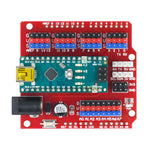 Besides the SVG header pins, this shield also provides ready pins for UART and I2C (4-way header pin). With additional GND (Ground) and V(5V) on every IO expanded header, you will not need to worry about finding ground and power for RC servo and sensors :)