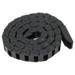 The drag chain resembles a tank chain and consists of many unitary links, which are free to rotate between the links.