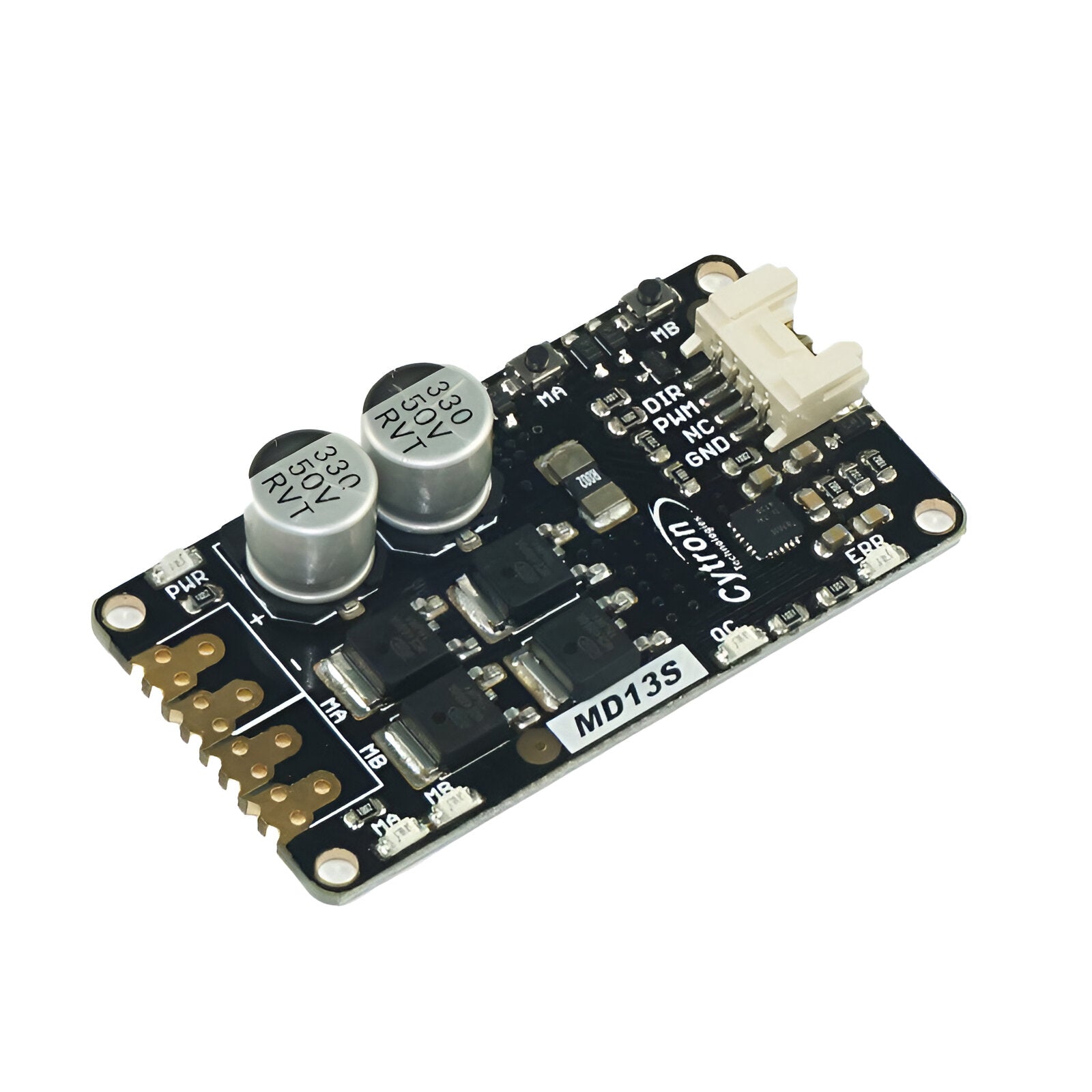 Brushed motor is the most widely used motor because of the ease of operation. Just supply the two terminals DC power supply, the motor will start rotating! Yet, you need a good motor driver to control the speed and direction from microcontroller. You are at the right page, MD13S is one of the easiest to use brushed motor driver.