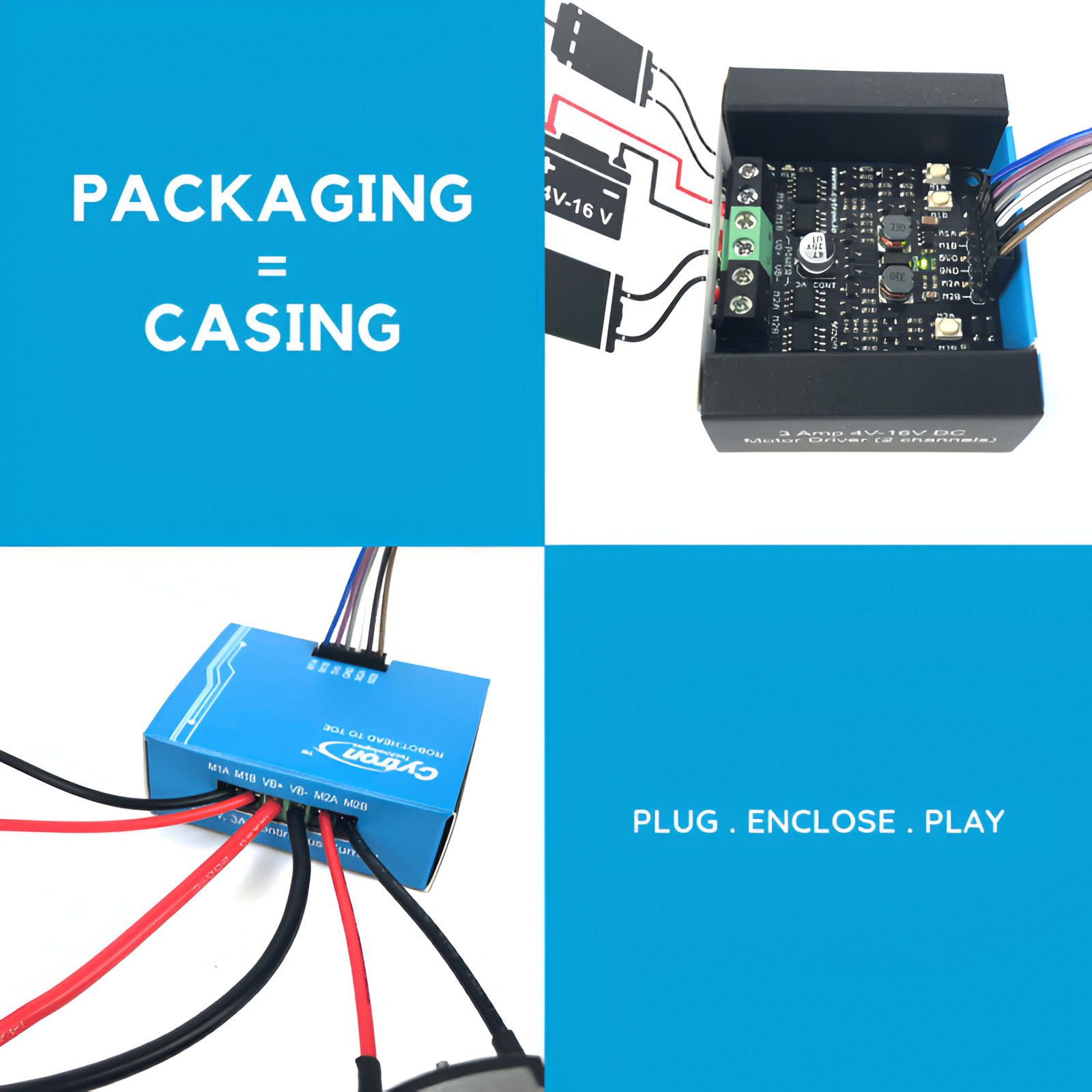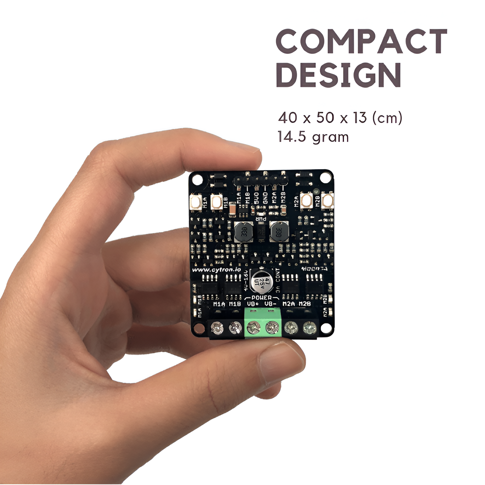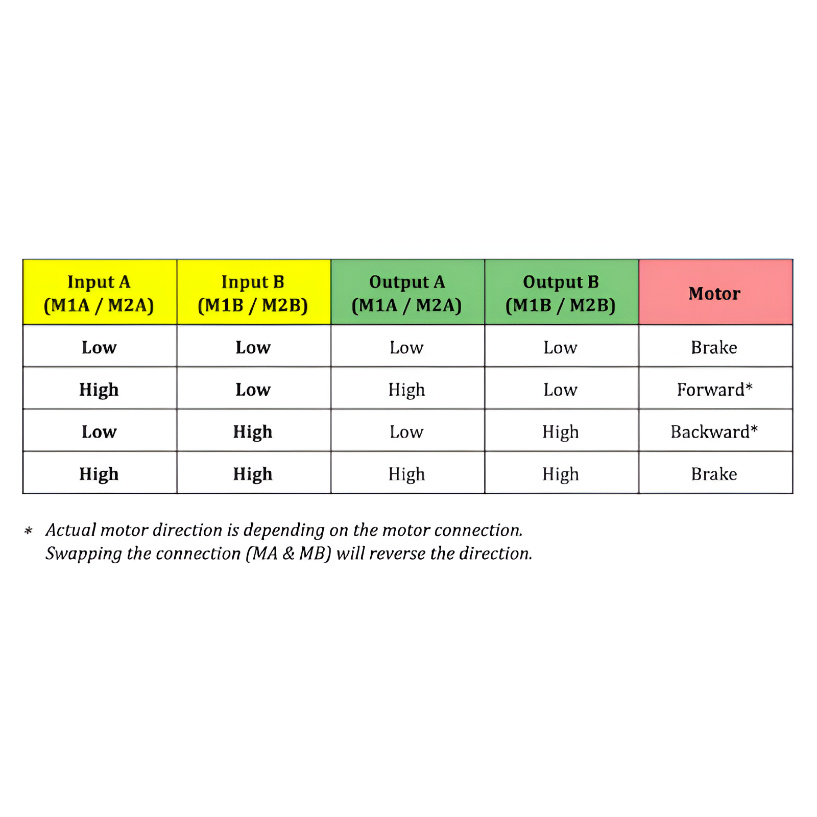 To prevent the motor driver from damaged by reverse voltage if the battery is connected in wrong polarity, it is equipped with reverse polarity protection. This is a very common mistake done by a lot of makers even for the very experienced one.