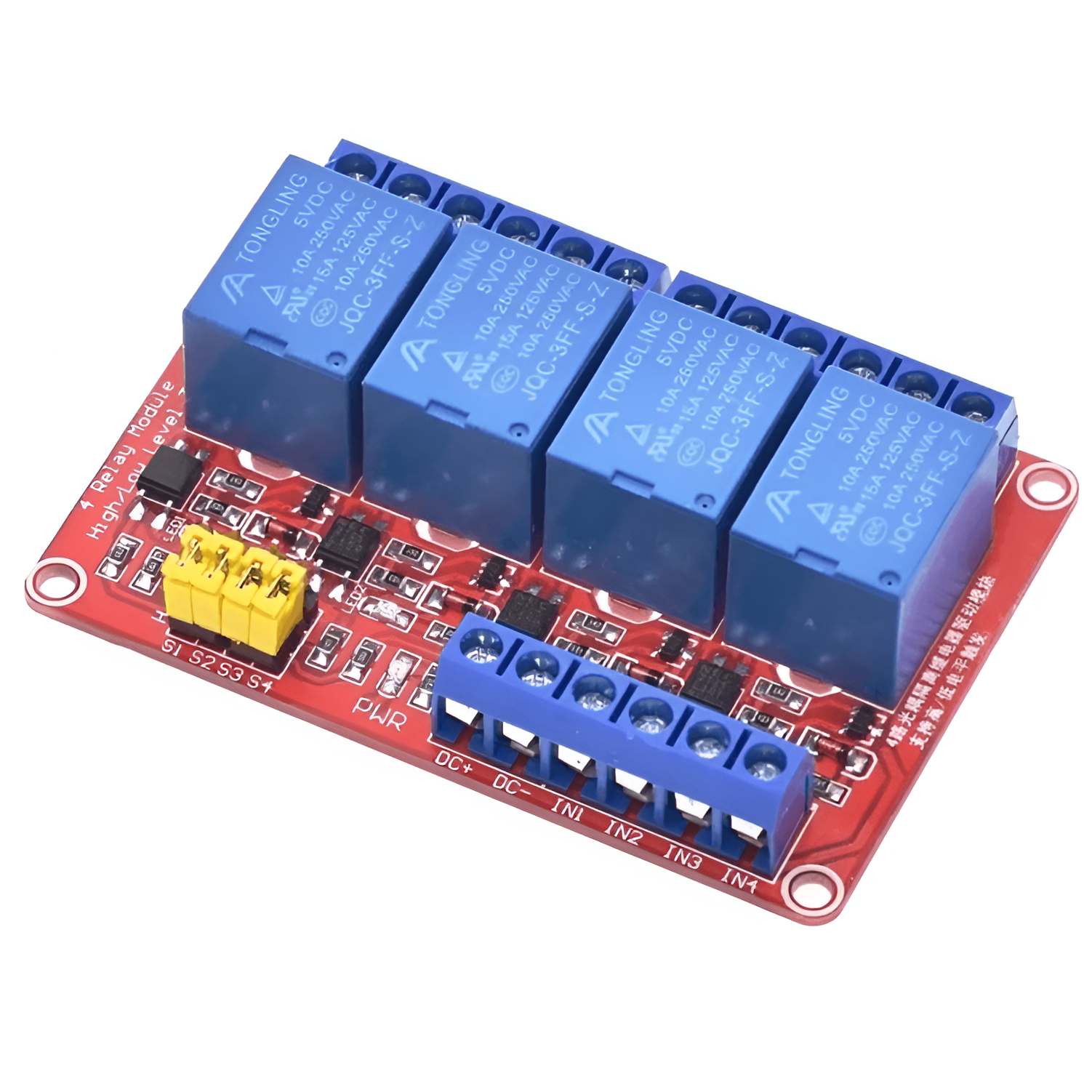 This is ready breakout board with 4 Channel 5V activated relay, with 3 screw terminals for the relay (NO, NC, COM) and screw terminals for control signal from microcontroller such as Arduino. The control signal is opto-isolated, protected. It even comes with activation LED indicator for the relay. Easy to use and suitable for beginner, and of course student too.