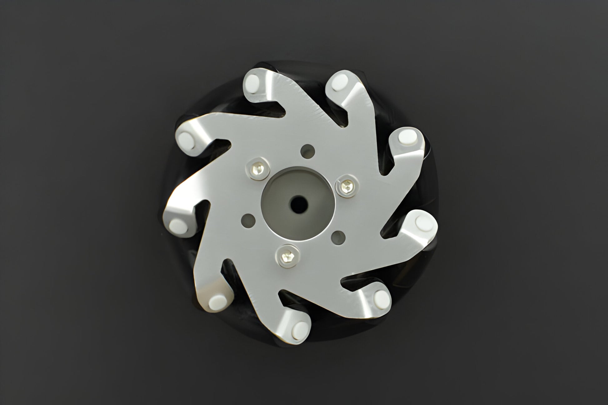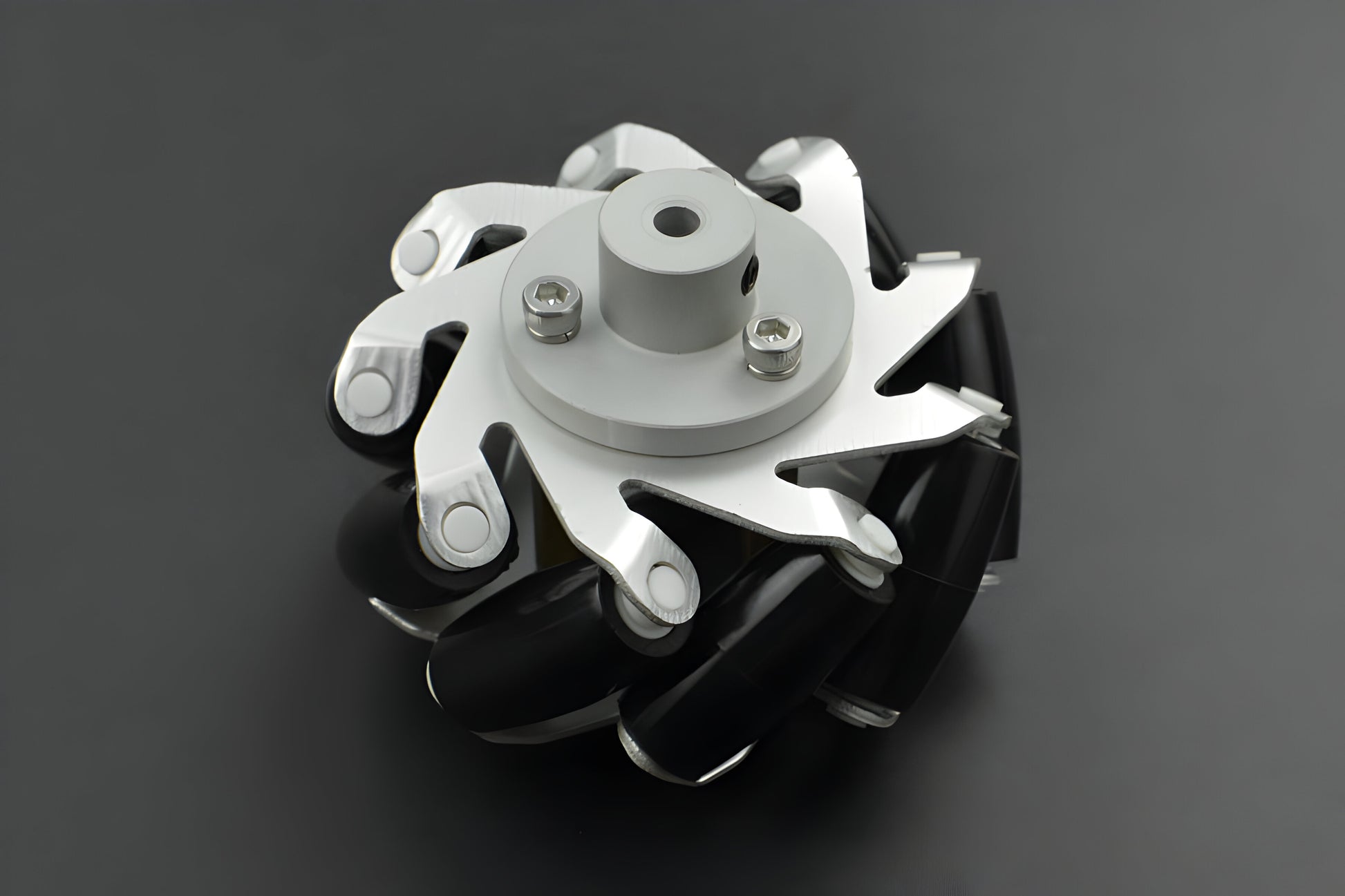 Different from the ordinary Mecanum wheel, this wheel, with better quality and texture, is equipped with metal exterior structure and has its own coupling matching with various motor shafts, which makes it quite easy to install. This Mecanum wheel has a diameter of 65mm and is composed of 9 small rollers that are made of plastic and coated with quality and high-friction silicone rubber, which are rugged and impact-resistant.