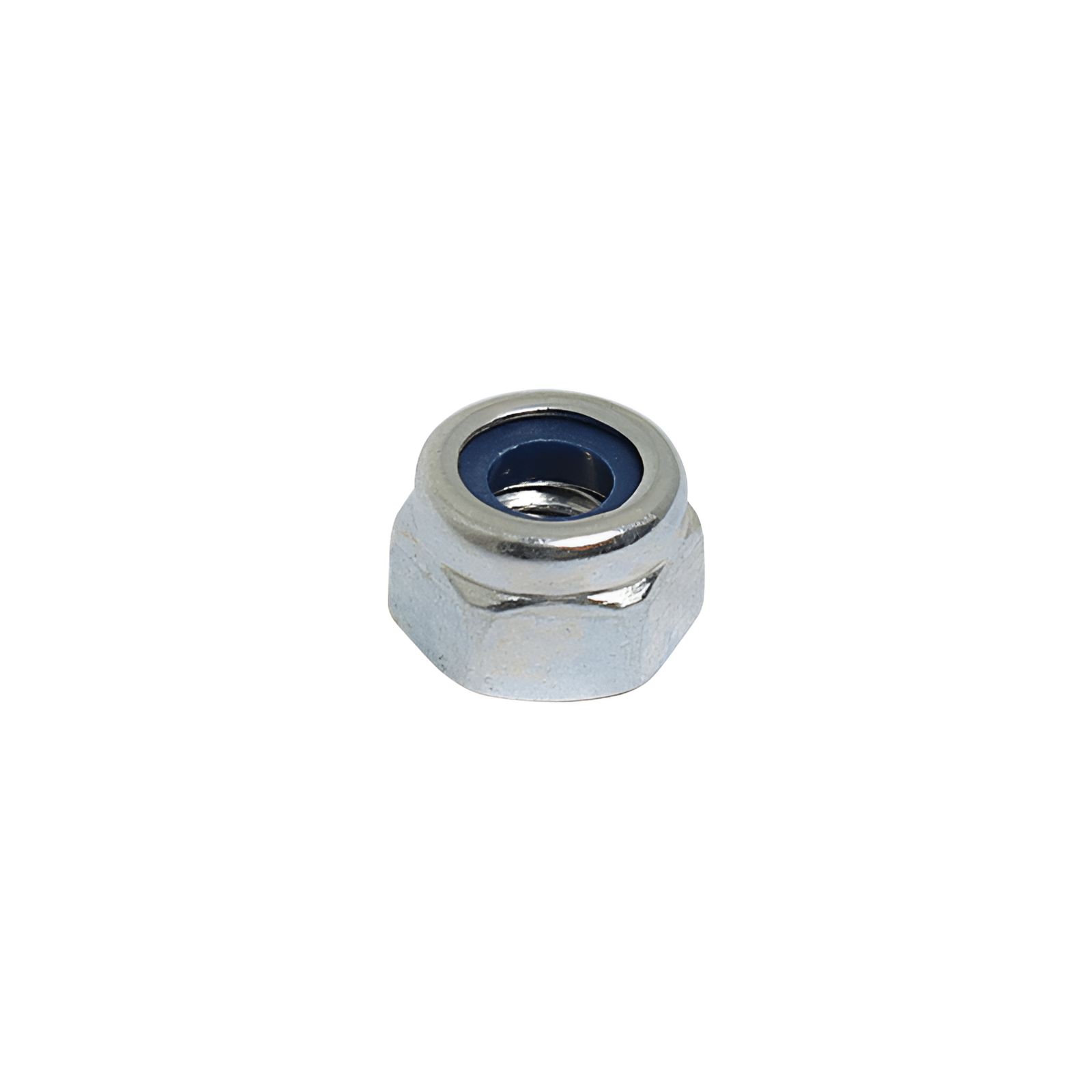 Self-locking nuts with glass-filled nylon inserts. These are designed to remain secure despite conditions of severe vibration.