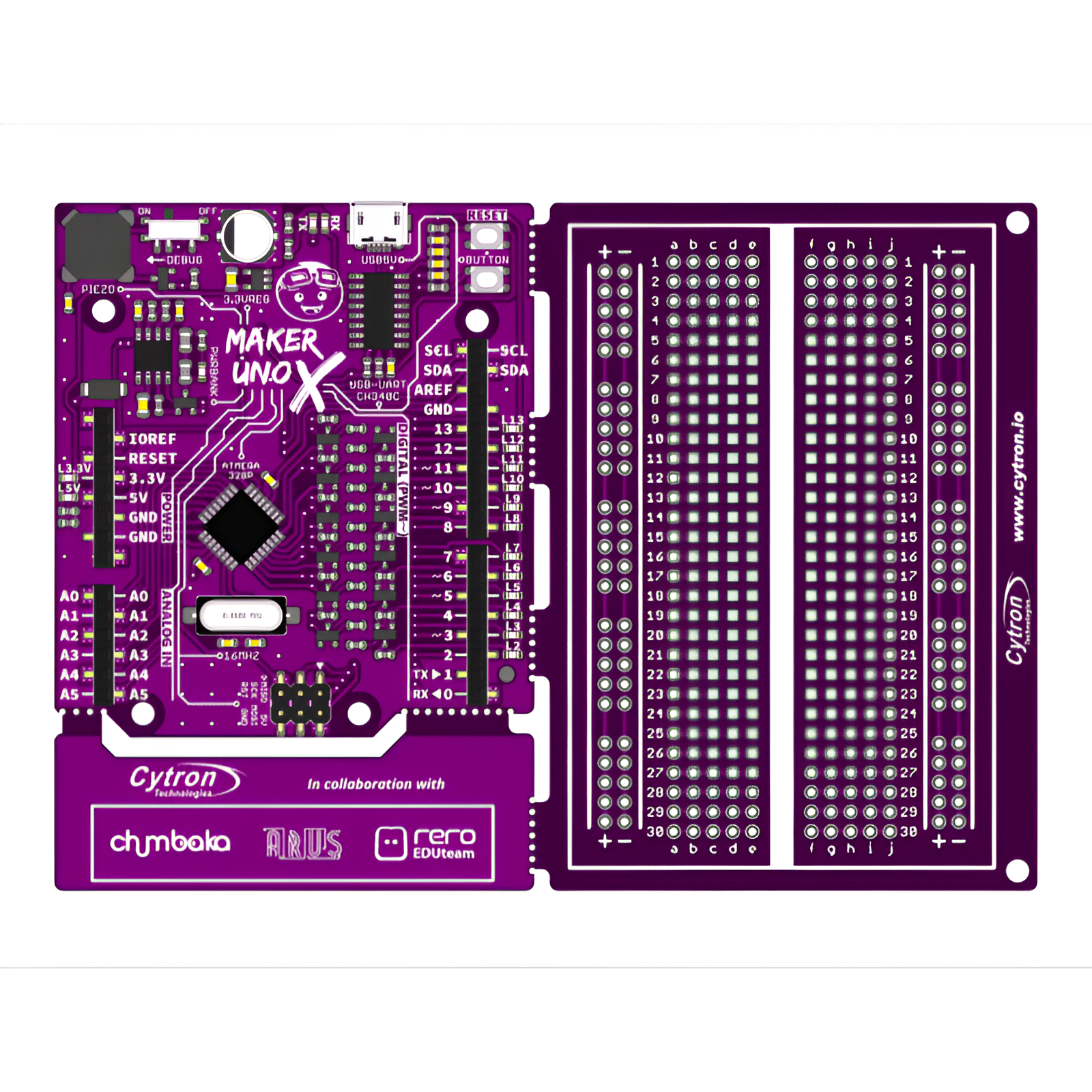 Maker UNO X is our take on the most Classroom-friendly Arduino-compatible board. It is the culmination of years of teaching Arduino & STEM by our education partners - Chumbaka, ARUS, and rero EDUteam. We designed Maker UNO X to be easy to teach in the classroom and beginners friendly for any students.