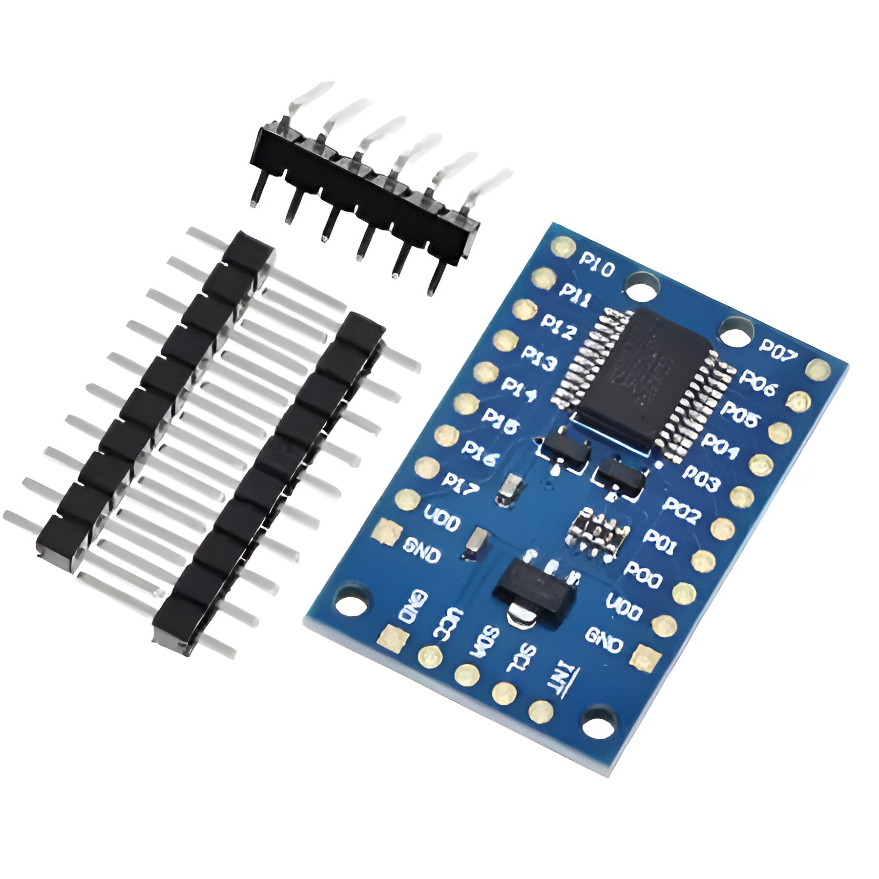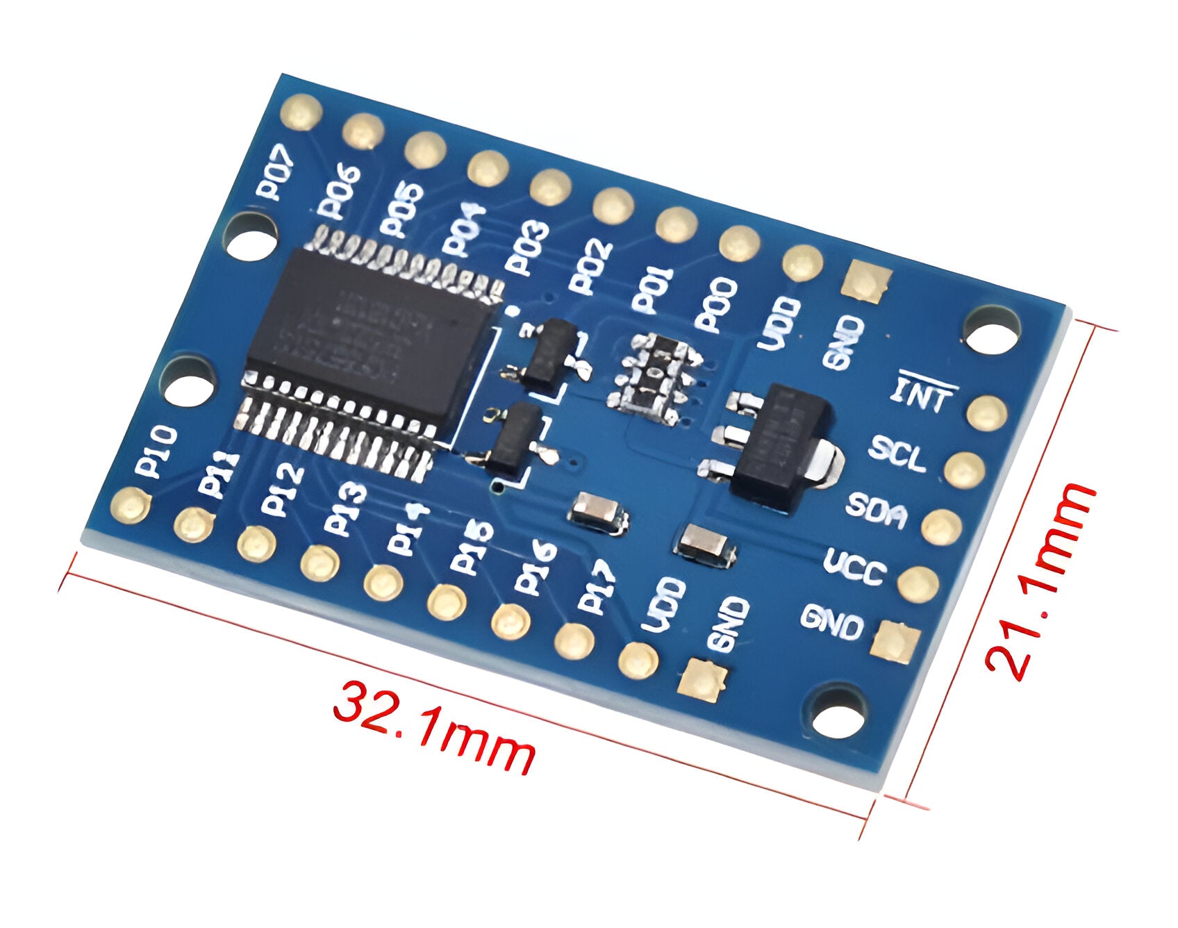 The PCF8575 I/O Expansion Board is a powerful and reliable tool for expanding the I/O capabilities of microcontrollers. It uses the I2C communication protocol to control up to 16 bidirectional input/output pins. On board 3.3V level converter, if you don't solder the VCC-VDD pad, the PCF8575 level is 3.3V. If you solder it, the level will be the same with VCC.