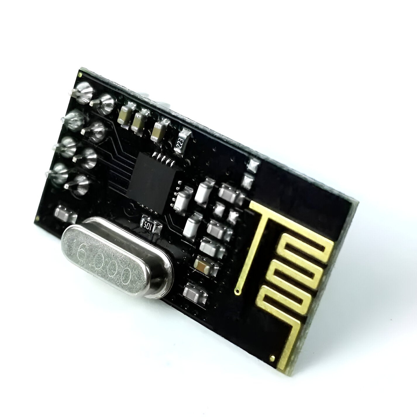 - Pins broken out : VCC, CE, CSN, SCK, MOSI, MISO, IRQ, GND