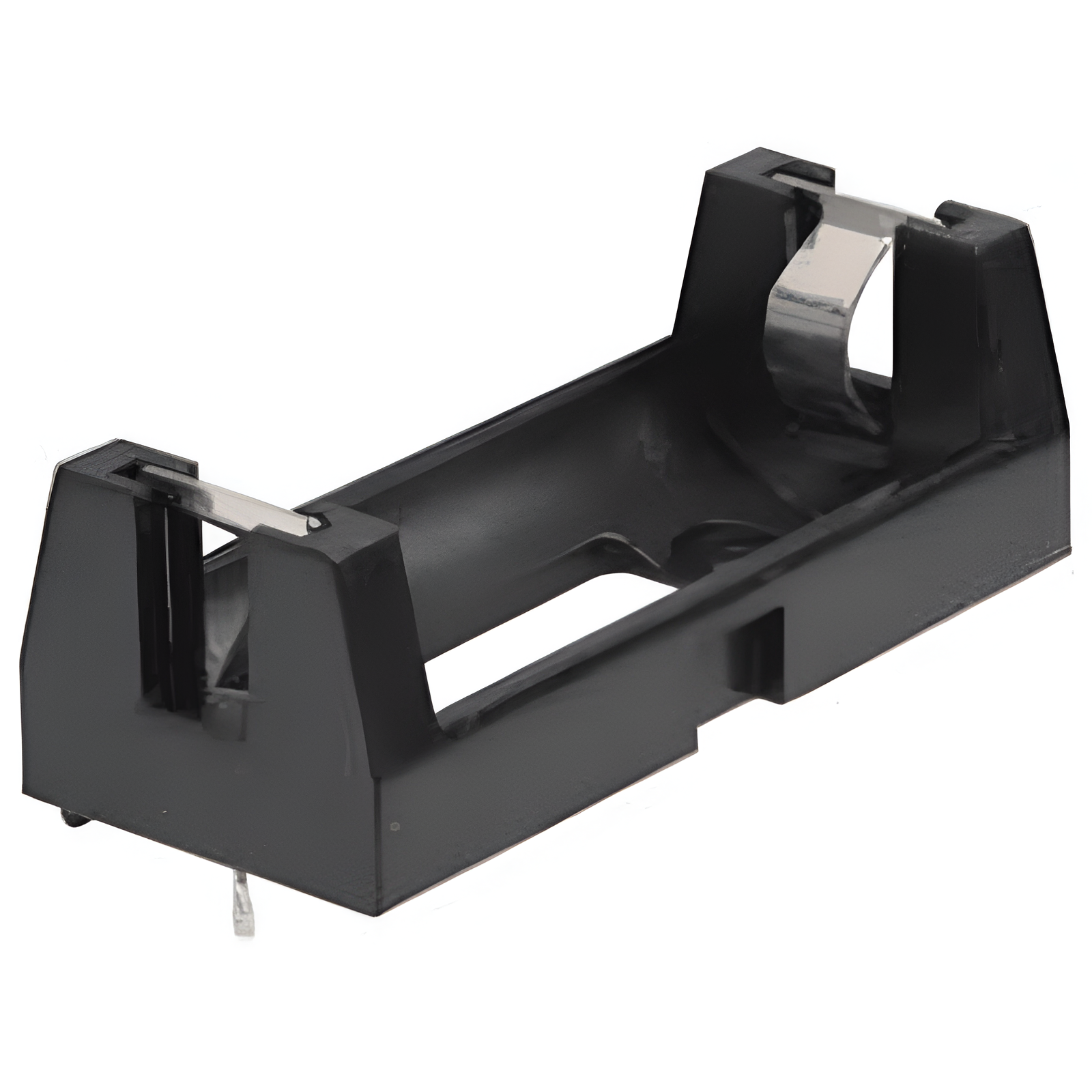 Single RCR123A/CR123A/16340/LIR123A lithium battery holder in a rectangular configuration. Ideal for installation in compact high power, portable devices. PCB mount