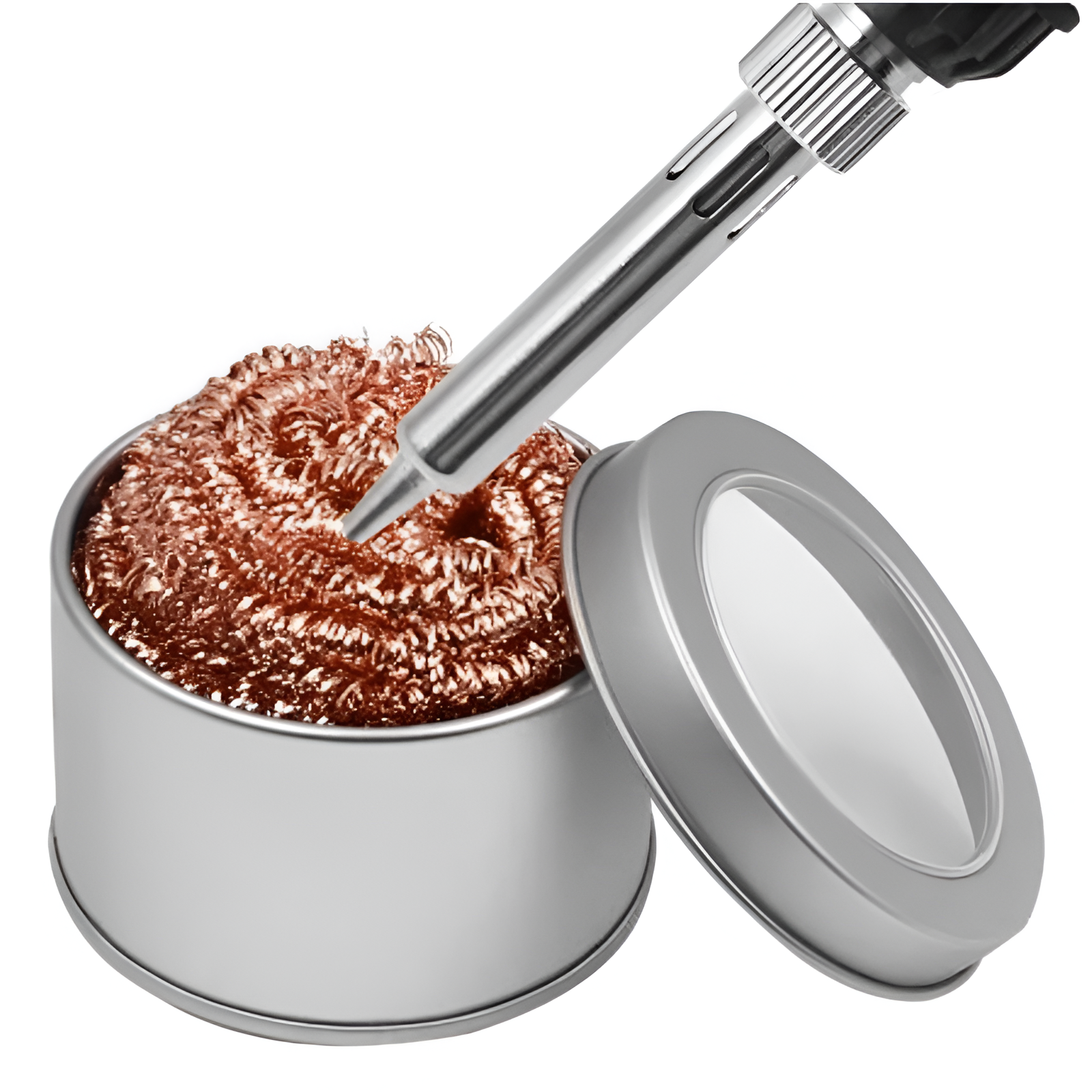 This Soldering Iron Tip Cleaner is made of durable metal and designed for easy use. It quickly and effectively removes soldering tin, protecting your soldering iron tips from damage. Its copper-wire construction and soft texture ensures it is safe for use on all soldering heads.