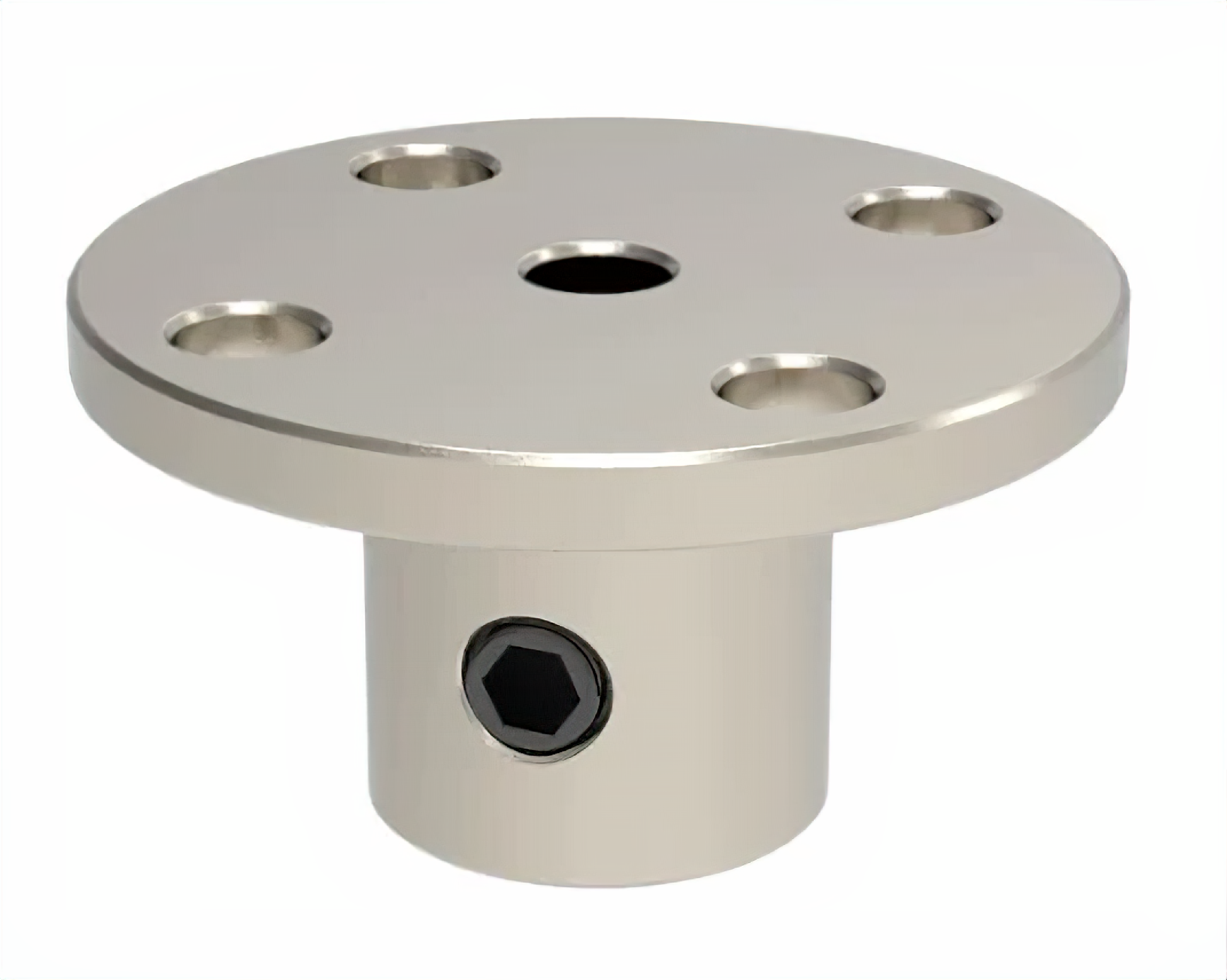 Metal key hub is a useful accessory of DC motor where you can convert the round output shaft of a DC motor to a flat surface that allowed you to attach with a foreign part, e.g.: pully, wheel, mechanism. It comes with 4 mounting holes (M3 size) allows a secure mounting.