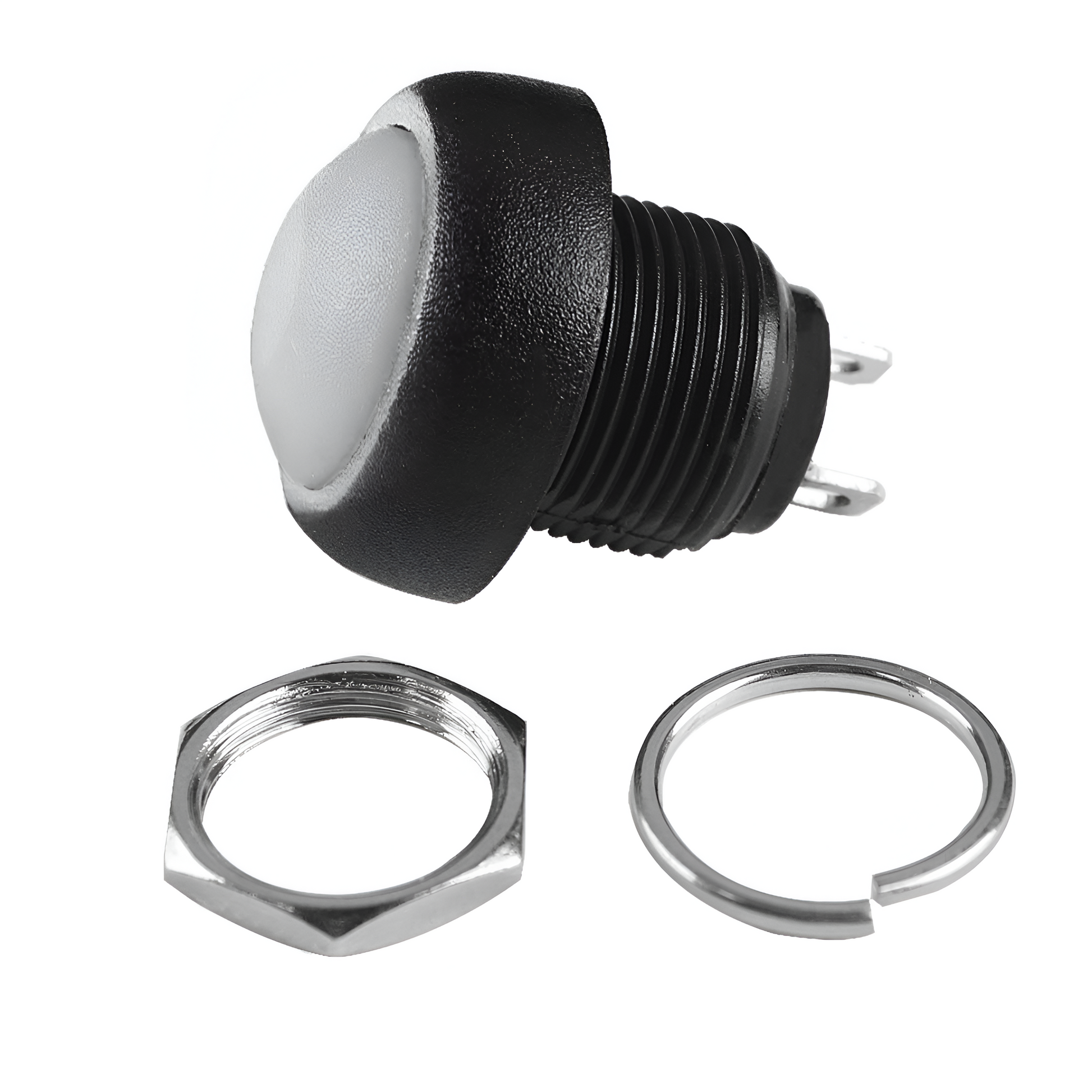 This is pretty straight forward panel mount momentary push button. White color top cap (where you push). Two terminals which you can extend with wires to machine or controller. This is normally open switch, both terminals will shorted and closed if the cap is pressed.