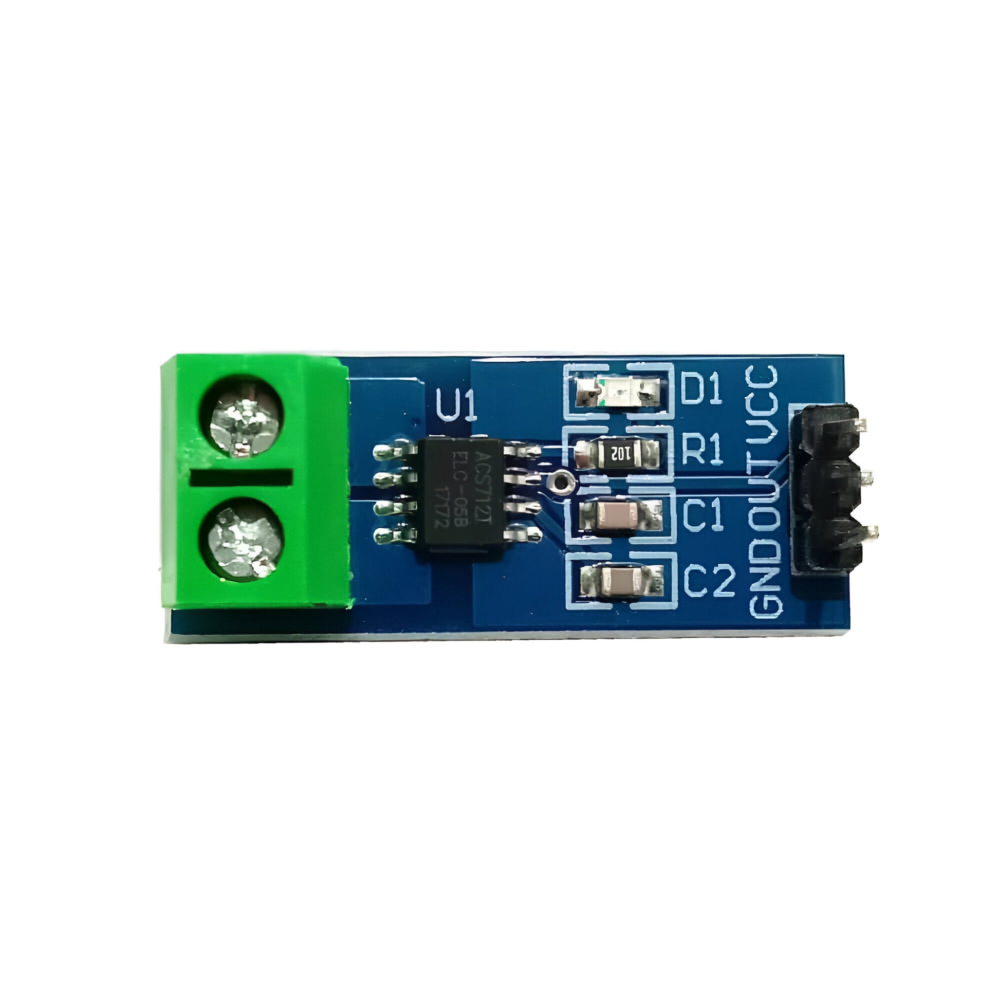 This sensor is compatible with platforms such as Arduino, ESP32, and other microcontrollers. It operates at a logic level of 3.3V or 5V and outputs an analog voltage proportional to the current flow.