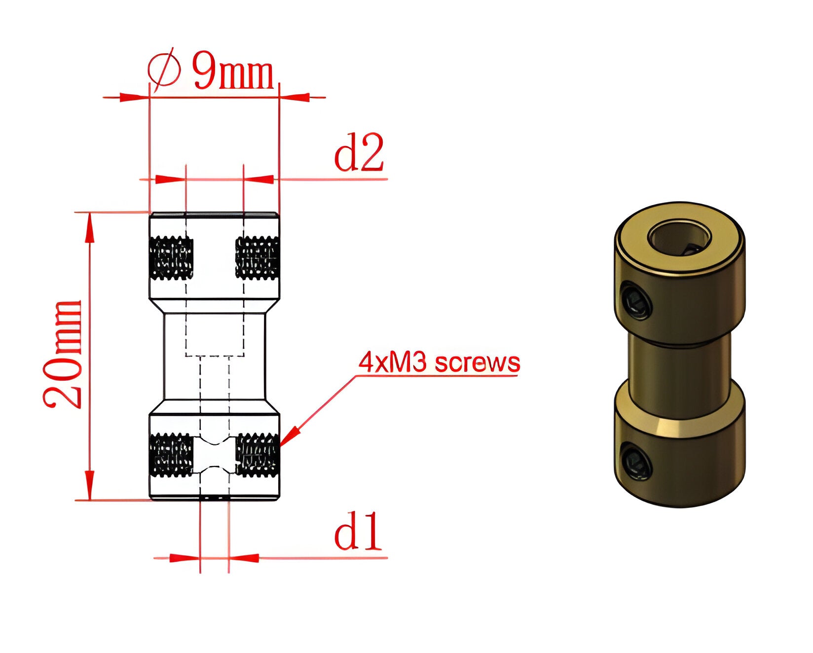 This Brass Motor Shaft Coupling Connector (4mm) is made of durable brass. It comes with 4 screws for secure fastening. Robust and reliable, it is ideal for a variety of motor shaft coupling applications.