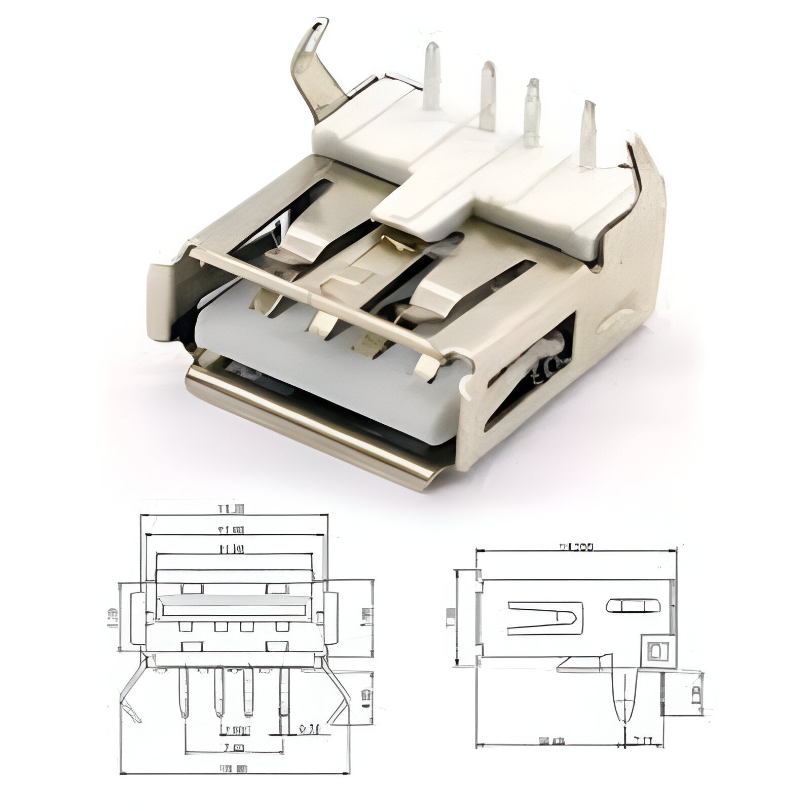 This is a standard USB A Type Female connector. Can use for all standard A type USB cable.
